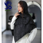 خانه روسری روسری قواره 140 روسری قواره دار مشکی ژاکارد (183)