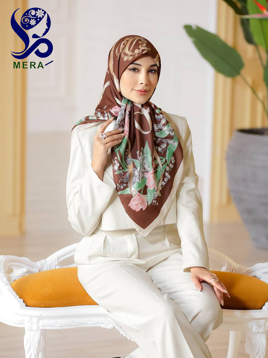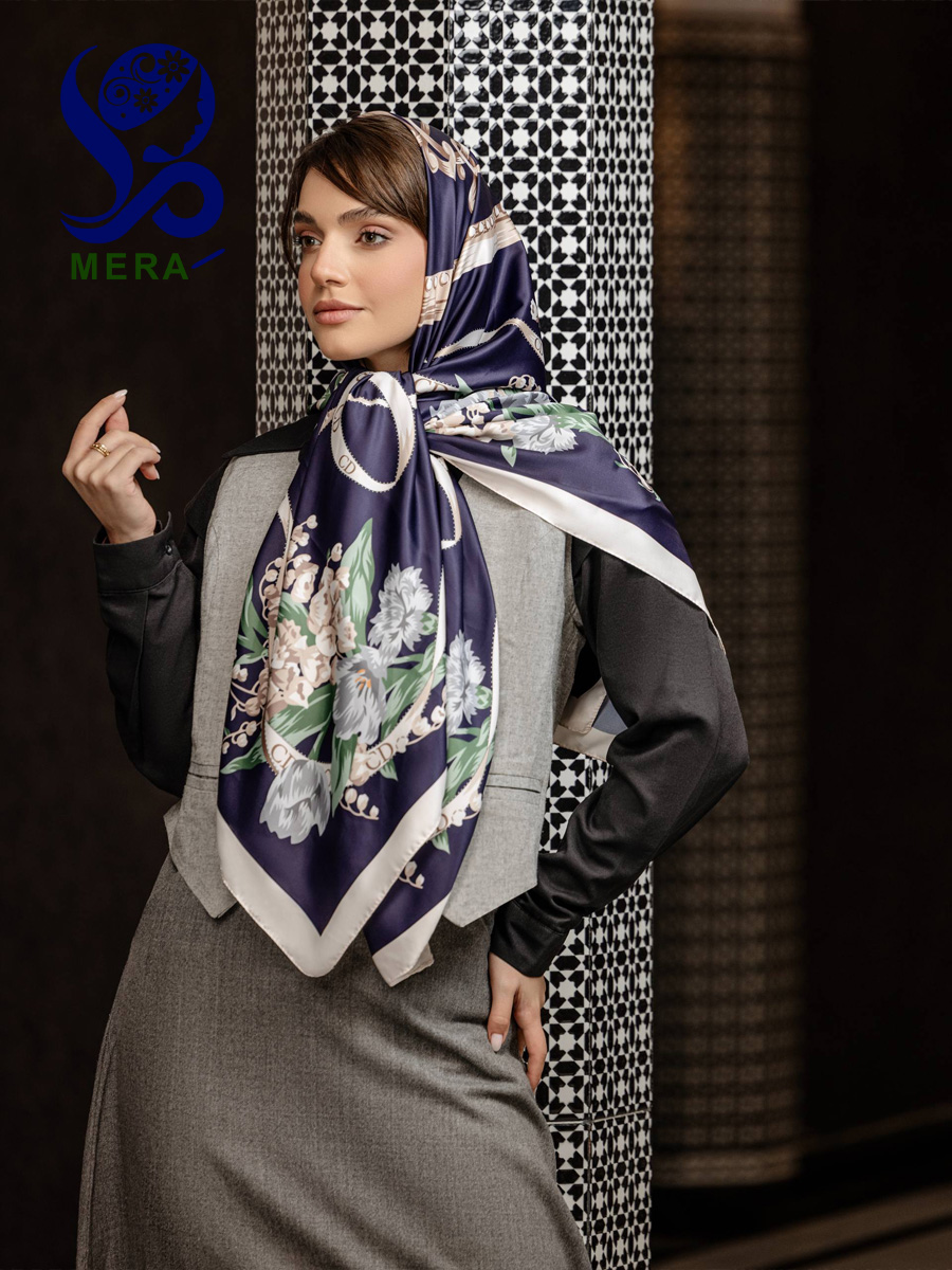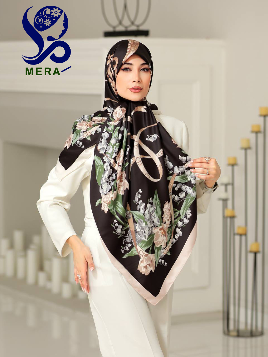 خانه روسری روسری قواره 140 روسری CD گل دار (257)